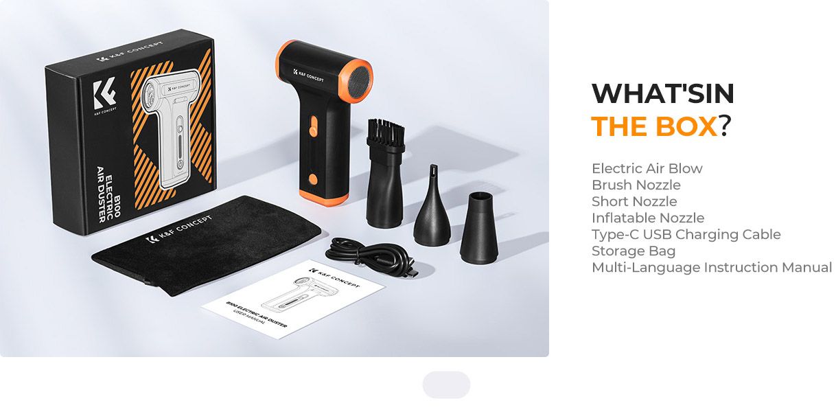 Ο πεπιεσμένος αέρας διαθέτει 3 σετ ακροφυσίων, τα οποία μπορούν να καλύψουν κάθε είδους απαιτήσεις καθαρισμού, φορητούς υπολογιστές, εσωτερικούς χώρους αυτοκινήτων, καθίσματα και μπορούν επίσης να χρησιμοποιηθούν για υπαίθρια πικνίκ για να ανάψουν φωτιές, να στεγνώσουν τα μαλλιά ανθρώπων και κατοικίδιων ζώων, φουσκωτούς δακτυλίους κολύμβησης και να αφαιρέσουν το χιόνι και τα φύλλα από την επιφάνεια του αυτοκινήτου, κ.λπ.