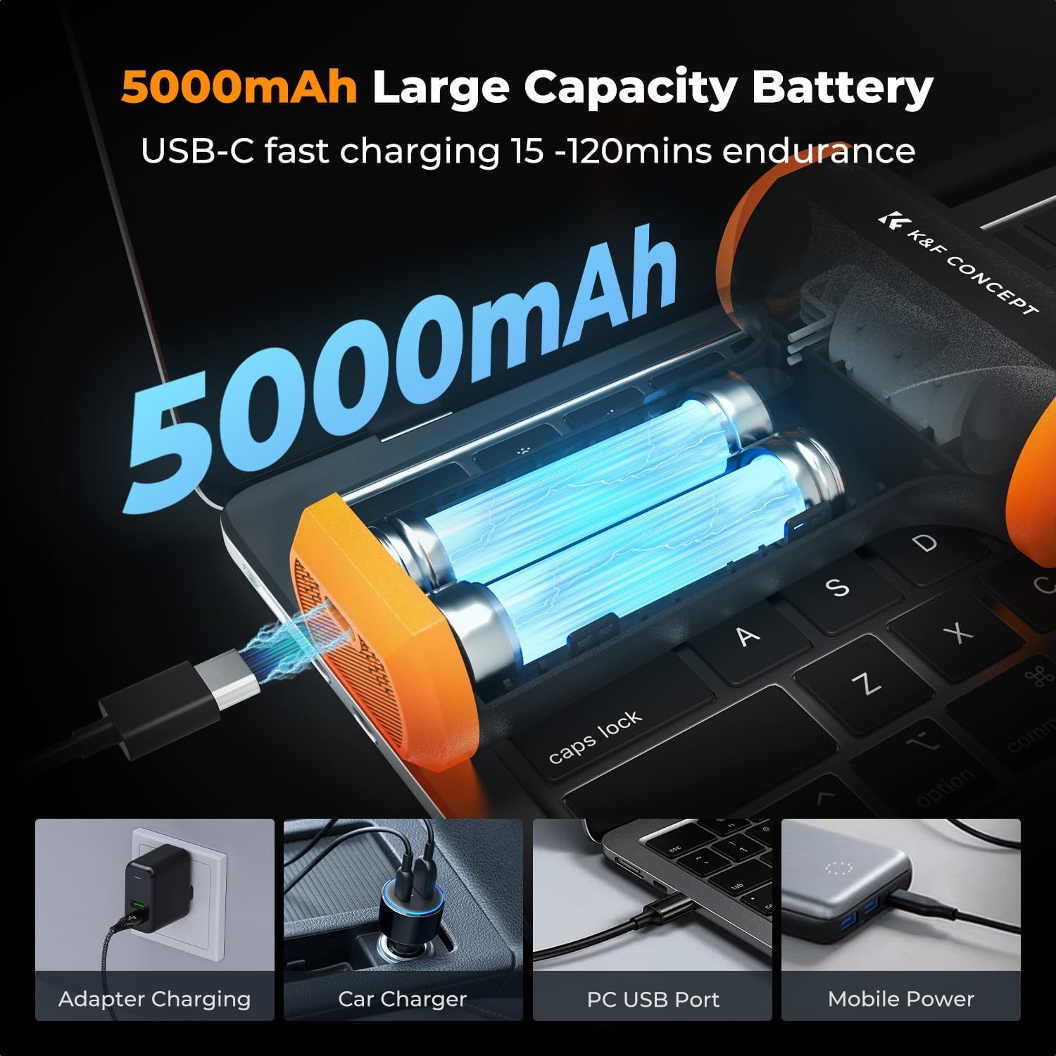 Εχει ισχυρή ταχύτητα ανέμου και μπορεί να ρυθμιστεί σύροντας το κουμπί, ένα αεροσκάφος καλύπτει όλες τις ανάγκες σας, αποτελεσματικό και βολικό, ενσωματωμένη μπαταρία μεγάλης χωρητικότητας, μπορεί να λειτουργεί συνεχώς για 120 λεπτά (χαμηλή ταχύτητα), διαθέτει καλώδιο φόρτισης USB-Type C, υποστηρίζει γρήγορη φόρτιση έως και 10W.