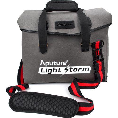 Store, transport, and protect one LS 1s/1c or two LS 1/2ws lights and related accessories with the gray Light Storm Messenger Bag from Aputure. Gear is easily accessed via the large top flap and zipper closure. Inside the bag is a padded compartment with a padded accessory sleeve and touch-fastening dividers for organizing gear. Carry the bag with the dual connecting top strap handles, or wear with the included, padded, adjustable shoulder strap. For strength and durability, the bag features water-resistant PVC construction and rubber corner protectors on the bottom.