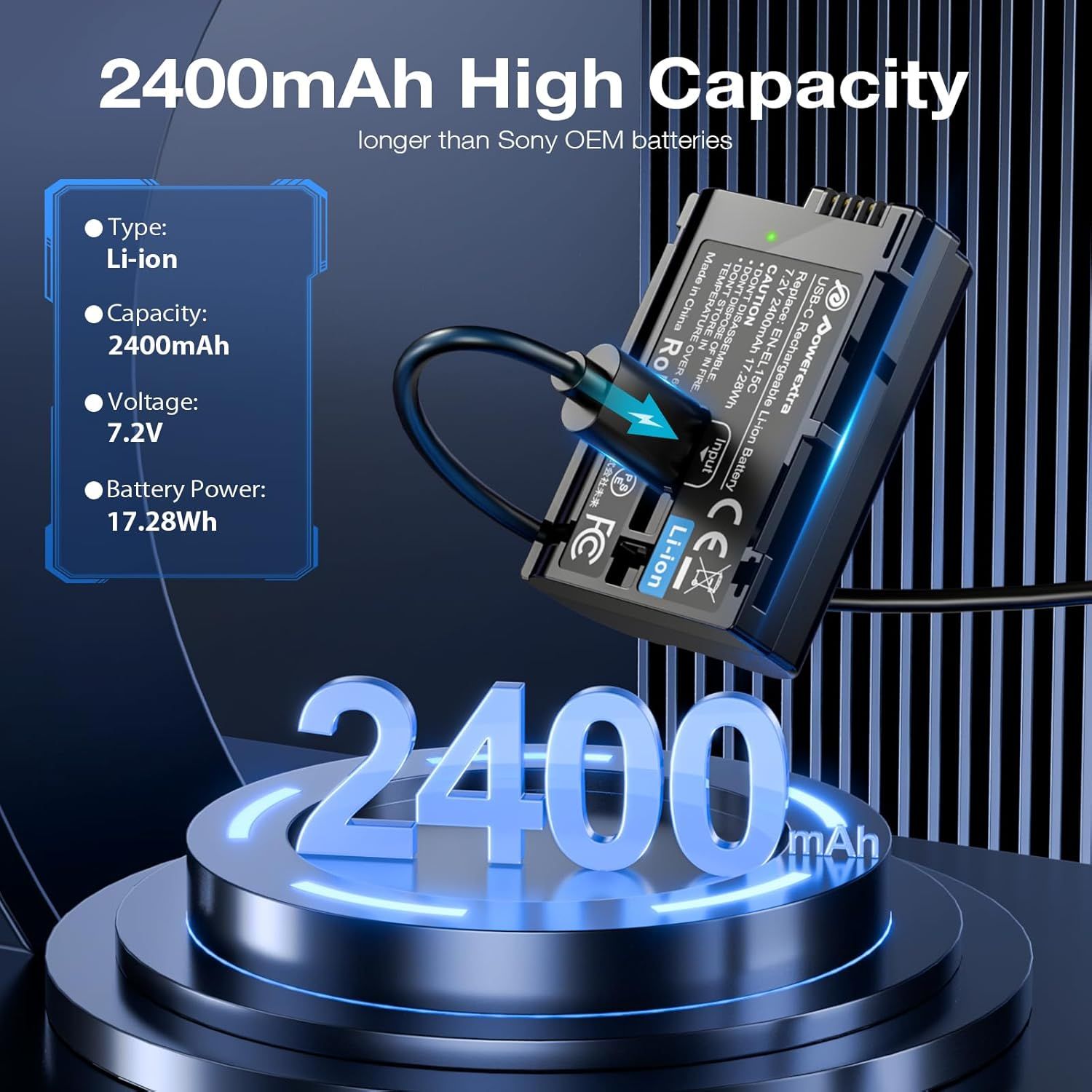 Η μπαταρία EN-EL15C 2400mAh, 7.2V, 17.28Wh είναι επαγγελματική αντικατάσταση για την μπαταρία Nikon EN-EL15/EN-EL15a/EN-EL15b/EN-EL15c – Τραβήξτε βίντεο για μεγαλύτερη διάρκεια με ισχύ, ιδανική για γάμους, εκδηλώσεις και βιντεοσκοπήσεις 4K. 20% Περισσότερες Λήψεις ανά Φόρτιση σε σύγκριση με τις τυπικές μπαταρίες EN-EL15