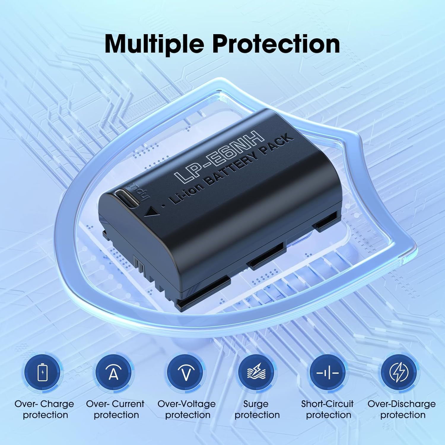 Η μπαταρία LP-E6NH διαθέτει περίβλημα από αδιαφανές ABS και PC που είναι πυρίμαχο και ανθεκτικό, παρέχοντας πρόσθετη ασφάλεια και μακροζωία. Εξοπλισμένη με ένα έξυπνο τσιπ, προσφέρει ολοκληρωμένη προστασία, συμπεριλαμβανομένης της προστασίας από υπερβολική τάση, υπερβολικό ρεύμα, βραχυκύκλωμα, υψηλή θερμοκρασία και υπερφόρτιση.