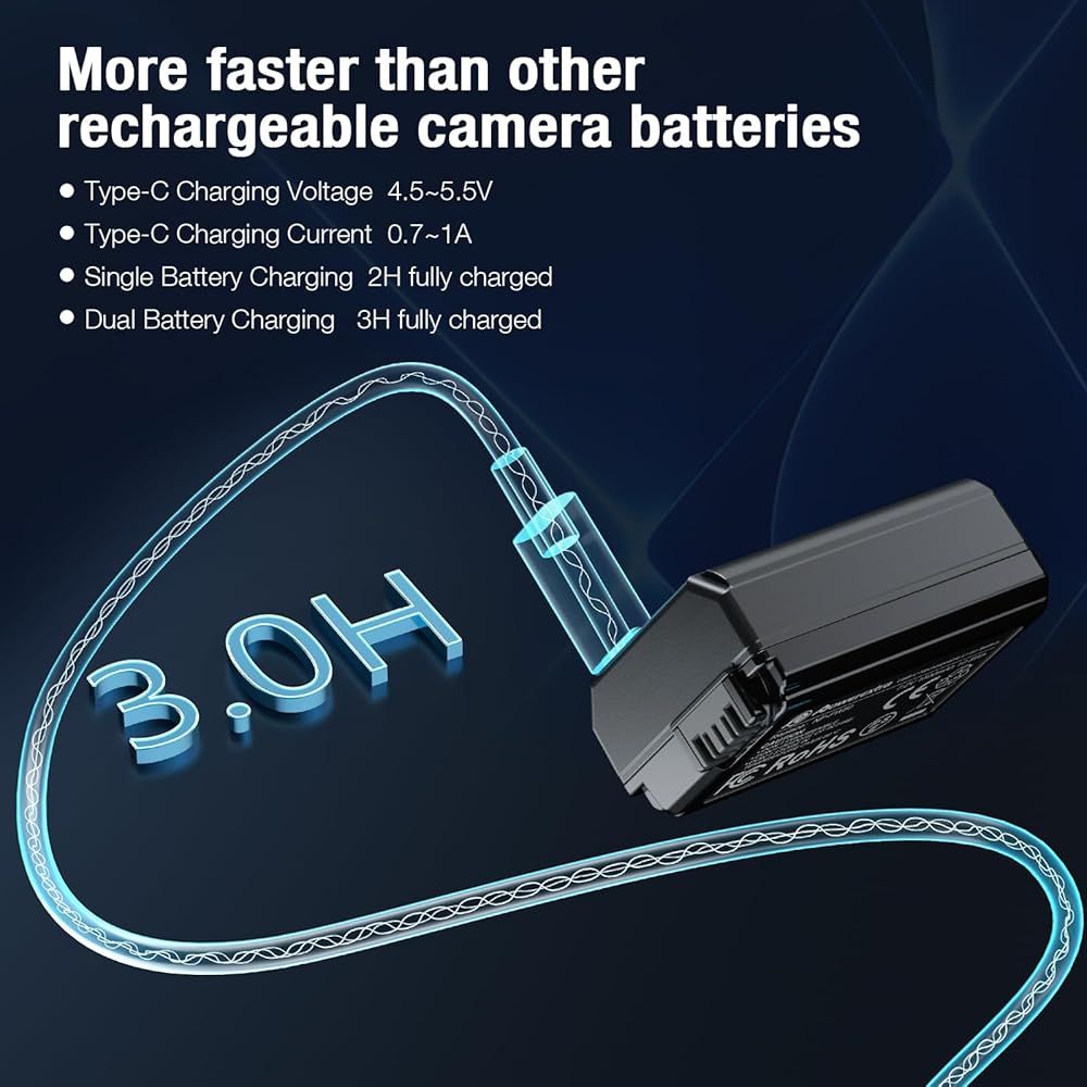 Πλήρης συμβατότητα: Σχεδιασμένο ως άμεση αντικατάσταση για τις μπαταρίες Sony NP-FW50, συμβατό με τις κάμερες ZV-E10, σειράς Alpha A7 (A7, A7II, A7RII, A7SII), σειράς A6000 (A5000, A5100, A6000, A6300, A6400, A6500) και NEX-3/5. Πλήρως αποκωδικοποιημένο για την αποφυγή προειδοποιήσεων από την κάμερα και την ασφαλή λειτουργία.