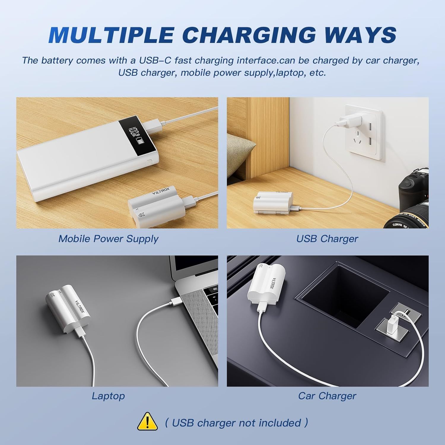 Η ανταλλακτική μπαταρία VILTROX NP-W235 μπορεί να φορτιστεί μέσω power bank, πολύπριζο, φορτιστή αυτοκινήτου και φορητό υπολογιστή, χρειάζεστε μόνο ένα καλώδιο φόρτισης USB-C.