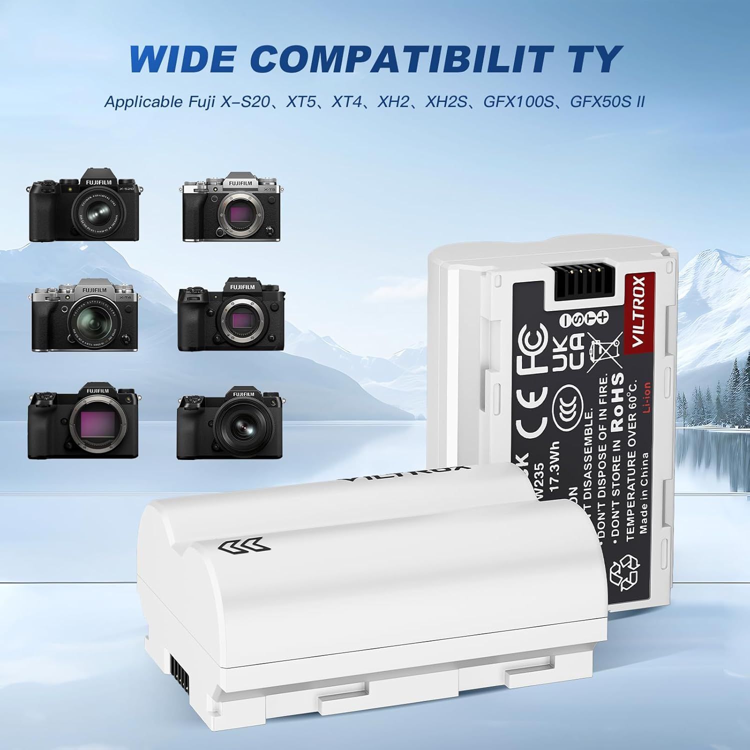 Η VILTROX NP-W235 είναι μια επαγγελματική αντικατάσταση της μπαταρίας Fujifilm NP-W235, συμβατή με την κάμερα χωρίς καθρέφτη Fujifilm X-T5 X-T4 GFX 100S GFX 50S II X-H2S. Πλήρως αποκωδικοποιημένη μπαταρία, δεν χρειάζεται να ανησυχείτε για την αναδυόμενη προειδοποίηση ότι η μπαταρία θα καταστρέψει την κάμερα.
