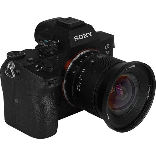 A compact wide-angle prime for Sony E-mount mirrorless cameras, this 12mm f/2.8 Mark II Lens from 7artisans Photoelectric is an all-manual lens well-suited for landscape, cityscape, and architectural subjects requiring a broad field of view. The lens's f/2.8 maximum aperture benefits working in a variety of lighting conditions and helps to maintain the small and lightweight form factor for handheld shooting. Its manual focus design is complemented by both depth of field and distance scales for utilizing pre-focusing and zone focusing techniques. Additionally, the lens permits working with subjects as close as 7.9" away.