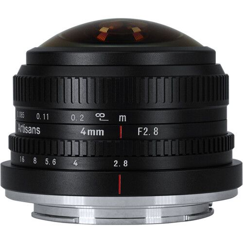 Offering an extremely wide field of view in a compact form factor, the 4mm f/2.8 Circular Fisheye Lens from 7artisans Photoelectric provides a 225° angle of view for FUJIFILM X-mount mirrorless cameras. As a circular fisheye, this lens is characterized by its noticeable distortion, and the greater-than-180° angle of view enables making 360° stitched panoramas with just two shots. Well-suited for low-light conditions, the lens sports a bright f/2.8 maximum aperture, and its manual focus design permits working with subjects as close as 3.3" away for close-up shooting, Additionally, the lens's lightweight design makes it well-suited for use on drones and gimbals.