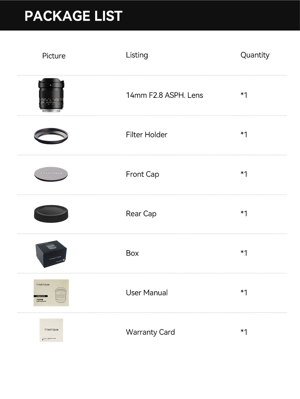 Ως εξαιρετικά ευρυγώνιος φακός, ο TTARTISAN 14mm F2.8 ASPH. διαθέτει μεταλλικό σώμα και συμπαγή σχεδιασμό, καθιστώντας τον ιδανικό για ταξίδια, πεζοπορία και φωτογραφία δρόμου.