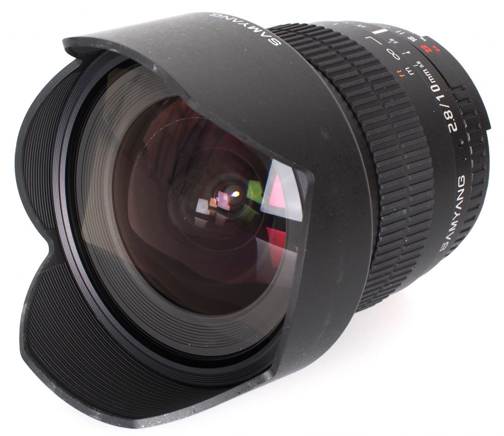 The Canon EF mount Samyang 10mm f/2.8 ED AS NCS CS Lens is a prime, manual focus wide-angle lens designed specifically for use with APS-C-sized image sensors. Providing a 35mm-equivalent focal length of 16mm and a broad 105.9° angle of view, this lens is ideally suited for interior, architectural, and landscape photography applications. One extra-low dispersion element and two aspherical elements have been incorporated into the optical design to minimize chromatic aberrations and distortion in order to produce sharper images. Additionally, a nano crystal anti-reflection coating system (NCS) has been applied to lens elements in order to reduce surface reflections and prevent lens flare and ghosting for improved light transmission and more contrast-rich imagery.