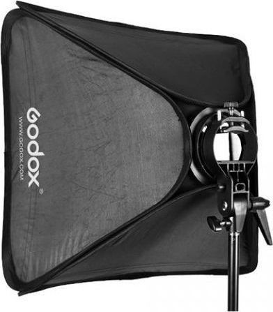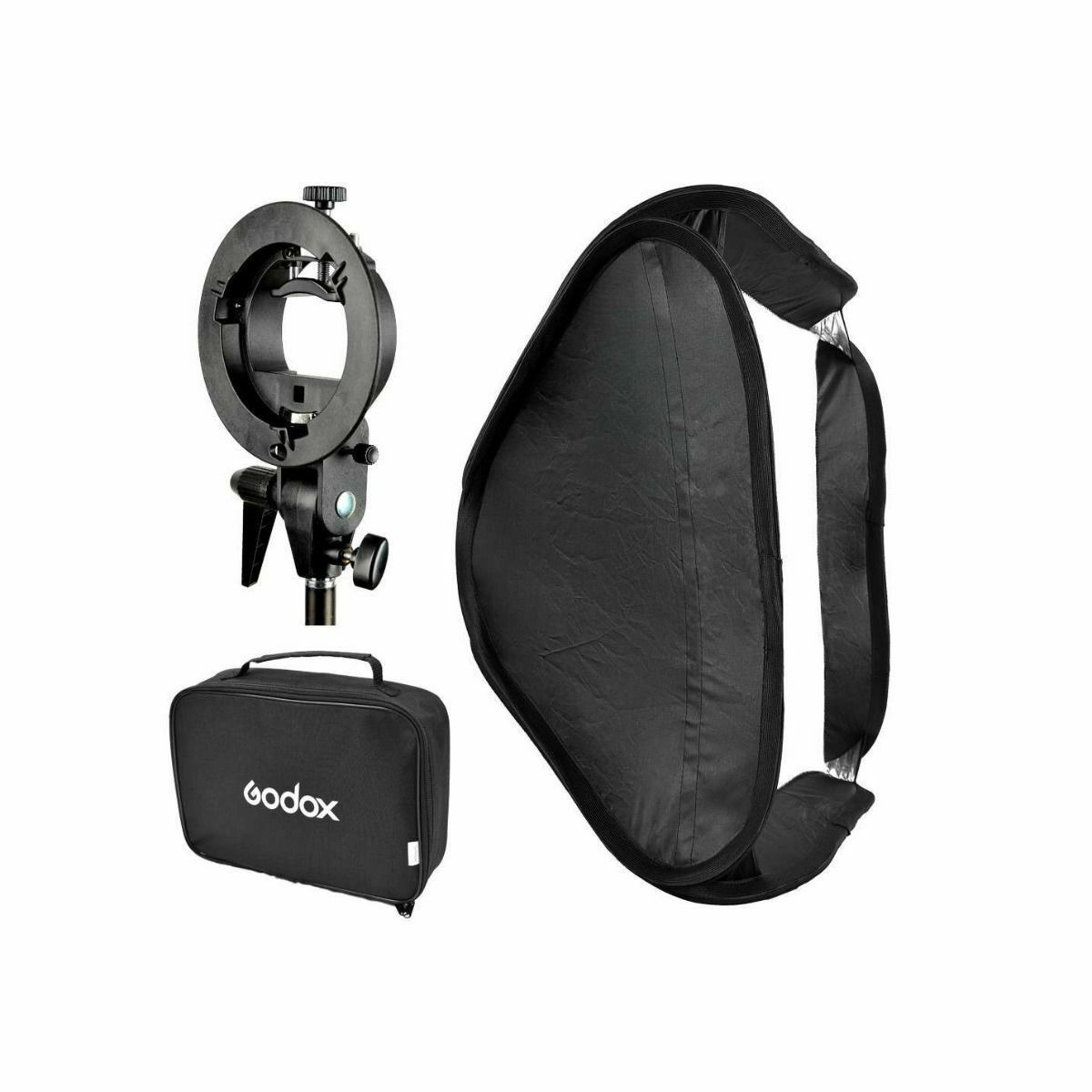 The S-type bracket is compact in its construction and requires no pre-assembly, so it is always ready to go. For adjusting the light direction, the bracket can be rotated and also tilts 90° front and back. Finally, a hole can be found at the bottom for installing an optional umbrella or other accessory. Included with the product is a 31.5 x 31.5" collapsible softbox for soft and even lighting, and a carrying bag for easy transport.