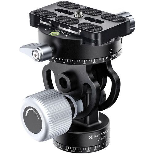 Kεφαλή K&F Concept VH-60L με διπλό πανοραμικό σχεδιασμό από κράμα αλουμινίου. Η πλάκα γρήγορης απελευθέρωσης υιοθετεί το πρότυπο Acra και μπορεί να εγκατασταθεί με gimbal άλλων εμπορικών σημάτων. Η βιδωτή διεπαφή στο πάνω μέρος είναι μια αποσπώμενη βίδα 1/4 ίντσας, η οποία μπορεί να είναι πιο βολική για την εγκατάσταση της κάμερας.
