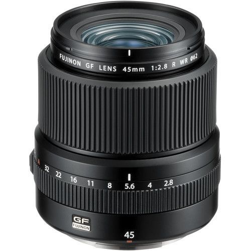Offering a versatile wide-angle perspective, the GF 45mm f/2.8 R WR from FUJIFILM is a 36mm equivalent lens for the G-mount GFX camera system. With a slightly wider-than-normal field of view, this lens is ideal for everyday shooting and its f/2.8 maximum aperture suits working in difficult lighting conditions. Its optical design incorporates one aspherical element and two extra-low dispersion elements to reduce both spherical and chromatic aberrations for improved sharpness and clarity. A Nano GI coating has also been applied to individual elements to suppress lens flare and ghosting for greater contrast and color accuracy. Contributing to its flexibility, the lens also features a dust-, freeze-, and weather-resistant construction for use in inclement conditions. Additionally, a manual aperture ring is featured for intuitive, tactile adjustment over exposure settings, and a Command position can also be set for camera-based control over the aperture.