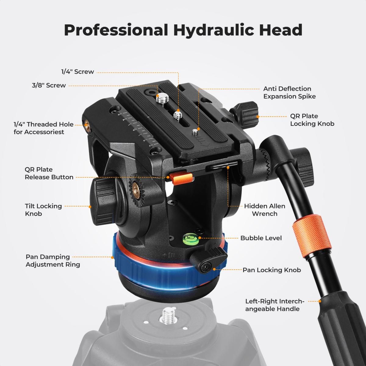 Η επαγγελματική υδραυλική απόσβεση εξασφαλίζει εξαιρετικά ομαλή οριζόντια περιστροφή 360° και εύρος κλίσης από -75° έως +90°, ιδανική για δυναμικά βίντεο, χωρίς κραδασμούς κατά τη λήψη από διάφορες γωνίες.
