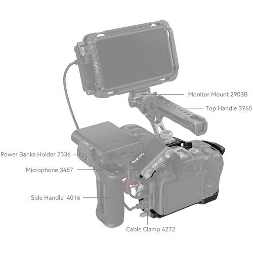 Το κλουβί διαθέτει μια ενσωματωμένη βάση τύπου Arca στη βάση, ώστε να μπορείτε να την τοποθετήσετε σε τυπικές κεφαλές και βάσεις τύπου Arca. Υπάρχει μια βάση παπουτσιού στο επάνω μέρος για ένα αξεσουάρ και οι ενσωματωμένες υποδοχές για λουράκια και μια βάση QD σάς επιτρέπουν να προσθέσετε έναν ξεχωριστό διαθέσιμο ιμάντα καρπού ή λαιμού. Περιλαμβάνεται μαγνητικό κατσαβίδι για τη στερέωση των βιδών της κάμερας και αποθηκεύεται στη βάση.