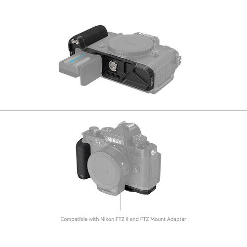 Ready to enhance your shooting experience, the Smallrig L-Shaped Grip is a small, yet essential accessory created specifically for the Nikon Zf mirrorless camera. It attaches to the bottom of the body via a 1/4"-20 screw, greatly increasing the ergonomics while providing an attachment point for your tripod with its integrated Arca-type dovetails, and retaining full access the camera's battery and memory card ports. The plate is finished in black aluminum while the grip area sports a textured, anti-slip surface that matches seamlessly with the Zf.