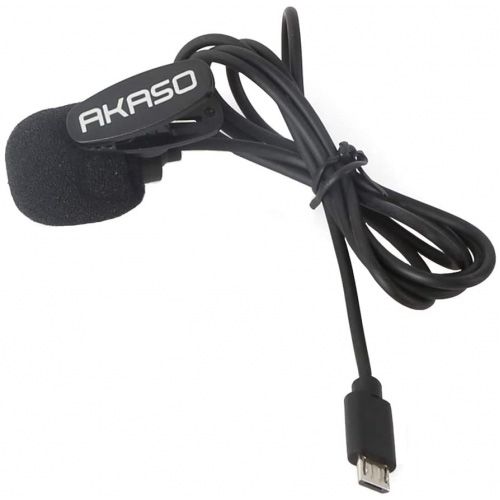 Compatible with select AKASO action cameras, this AKASO External Lavalier Microphone (Micro-USB) helps capture improved audio thanks to its 360° pickup pattern. The mic is powered via your camera, so you don't have to remember to change a battery. The microphone includes a clip for attaching to clothing as well as a windscreen to reduce wind noise.