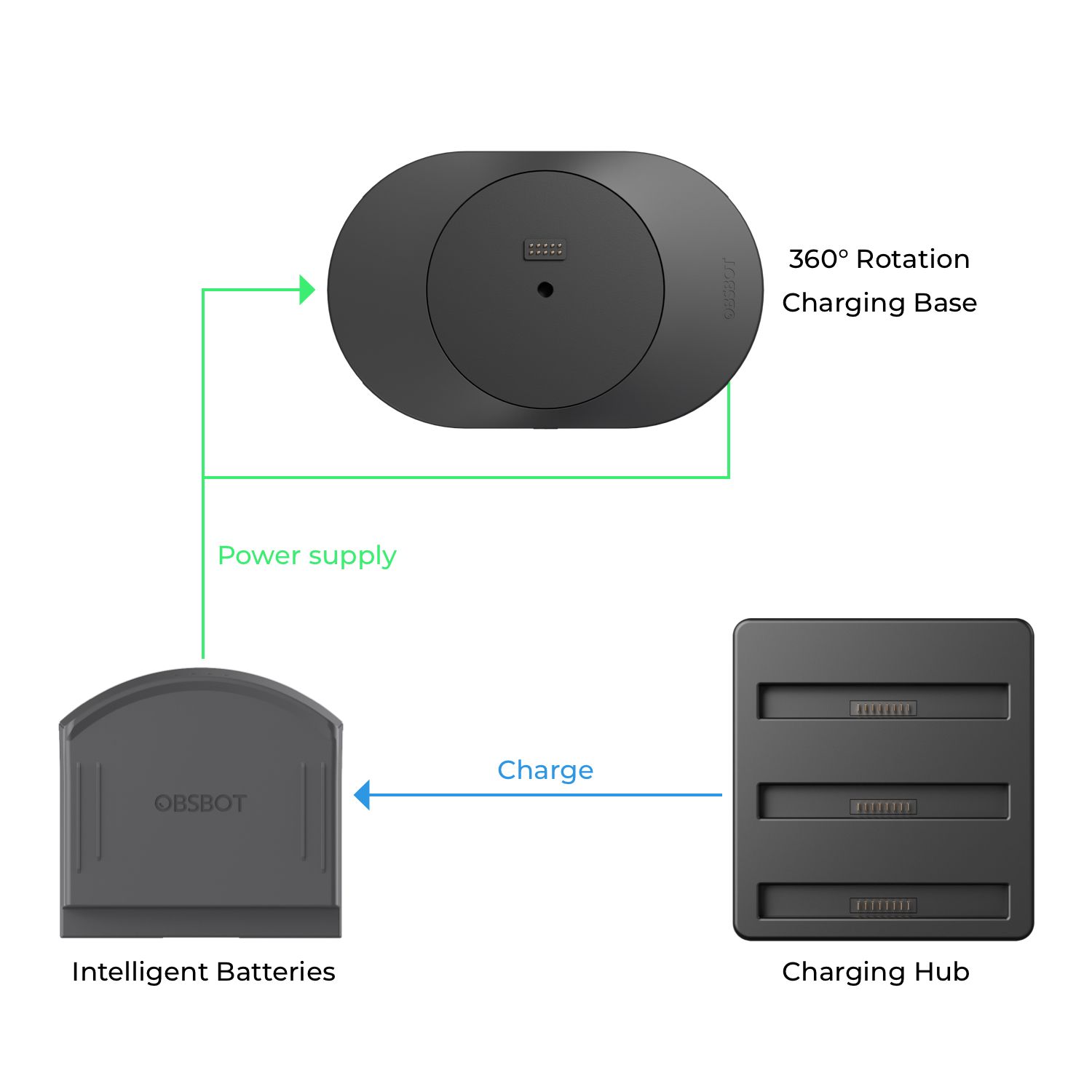 Ένας συνδυασμός φόρτισης που κρατά το Tail Air σας φορτισμένο και έτοιμο να πάει οπουδήποτε, παρέχοντας πάνω από 7 επιπλέον ώρες αντοχής για το OBSBOT Tail Air. Κατά τη φόρτιση, μπορείτε να συνεχίσετε να τραβάτε λήψεις από οποιαδήποτε γωνία με την περιστρεφόμενη 360° βάση του.